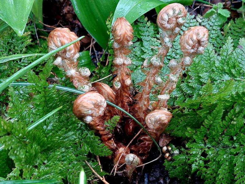 Aber einer meiner Lieblinge will wieder: Dryopteris dickinsii incisa - im hellgrünen Austriebskleid am schönsten :D