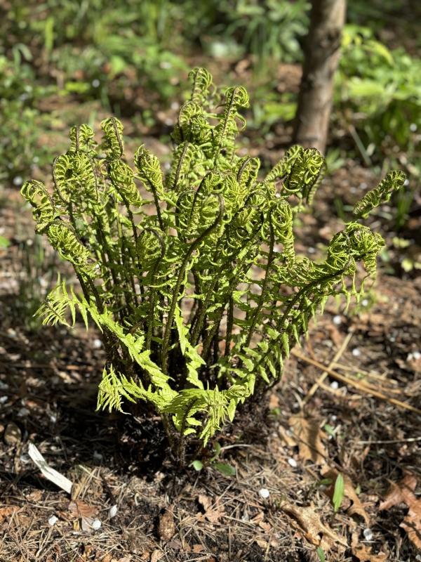 Das mit dem Farn ist kein Problem bei Galanthus, Scilla, Hasenglöckchen, Cyclamen , die kommen gut damit zurecht und selbst durch Farn fällt etwas Licht.
