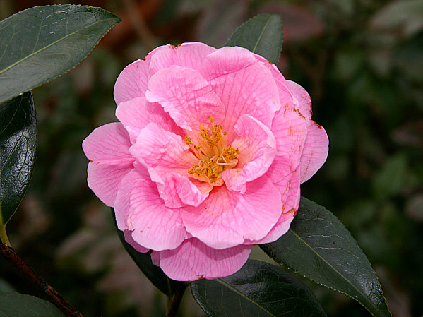 Eine weitere Kamelie hat heute bei mir die Blüte voll geöffnet. Donation, ein Hybride von japonica mit saluensis.Fuliro