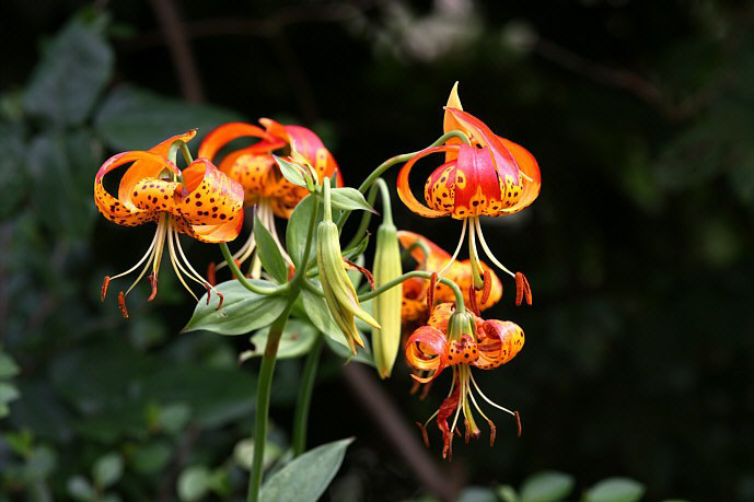 Immer wieder schön ist auch diese Sorte aus der Bellingham-Hybrid-Gruppe, leider fällt mir ihr Name gerade nicht ein, irgend etwas mit Sunset? Im Gegensatz zu L. pardalinum wird sie nie höher als 1 m und hat auch selten mehr als zwei Blüten pro Stengel. Lilium  'Bellingham-Hybrid'LG., Oliver