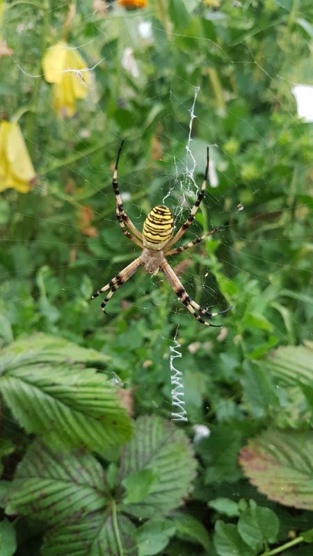 Nicht nur die Menschen werkelten heute im Garten,auch diese dicke Spinne war schwer am arbeiten.