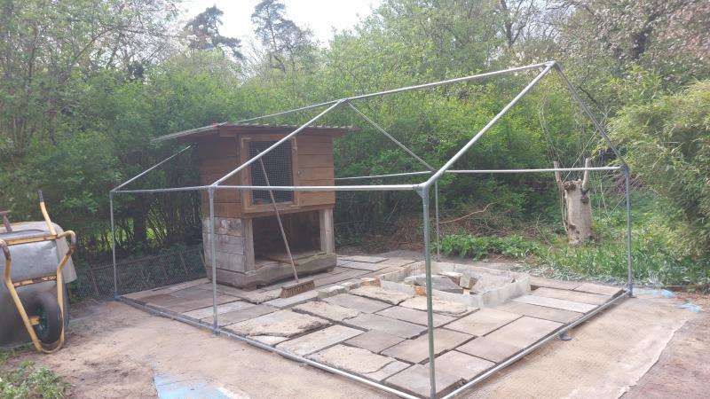 Dann alles ausgelegt und angefangen das Gestell (ein Hühnerauslauf) aufzustellen