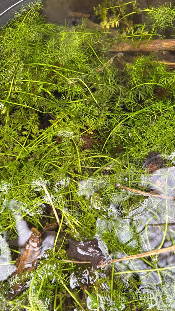 Auch der Röhrige Wasserfenchel zumindest der Teil der im Wasser wächst scheint grün zu überdauern, der Kübel war schon komplett durchgefroren diesen Winter