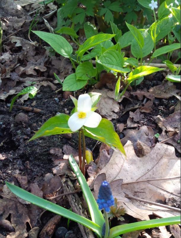 Beneidenswert. Das kleine Blatt links am Bildrand, hinter dem Trillium das beinahe vom Muscari erschlagen worden wäre ;D, ist alles was hier an White Beauty wächst.