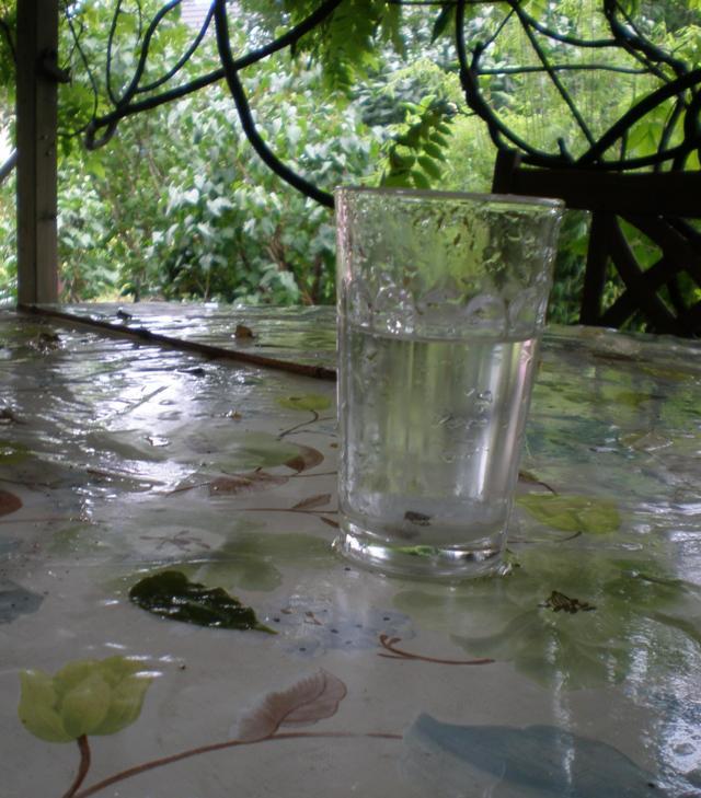 Seit gestern etwa 13.30 Uhr ist so viel Wasser in das Glas unter der Glyzinie gefallen...........aber vorher konnte ich noch fotografieren!