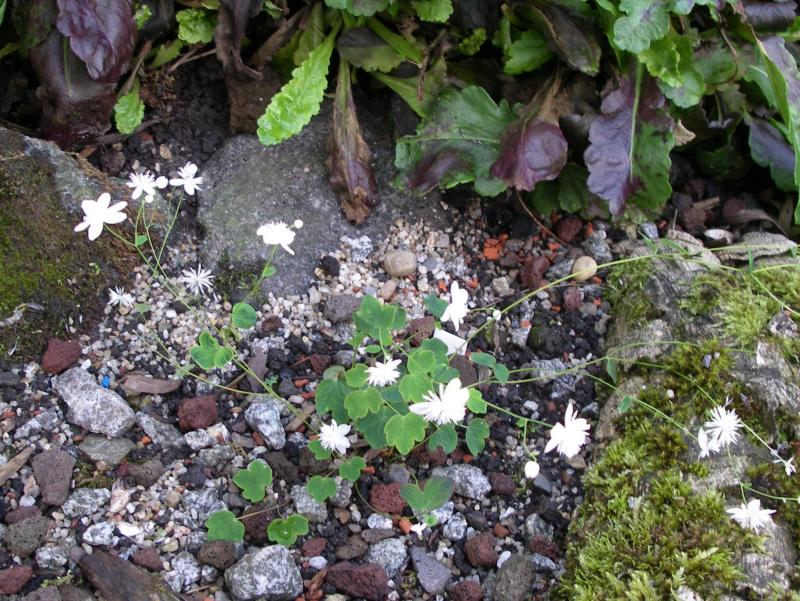 ...Das Laub sieht ja echt genial aus. Anbei ein Bild von heute...bevor der große Regen kam.Thalictrum tuberosum aus den pyrenäen wird jedes jahr schöner. im ganzen kann man dieses relativ kleine Thalictrum nicht fotografieren...am boden liegen ein paar wenige blätter auf, aus denen ein paar blütenstängel mit ungwöhnlich großen weißen blüten aufsteigen. standort sehr sonnig, boden mit viel splitt.