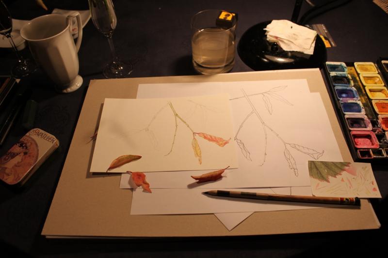 @Saattermin, ja, das kann gut sein, dass die 'kleine Banane' eine Miniaturzucchini ist. & die 'Schwarze Weisheit' ist ein alte Zigarrendose. Vielen Dank für dieses Bild, liebe Conni, Deine Worte machen den Moment lebendig & man möchte sich eigentlich nur dazu setzen, ein Käffchen trinken, Dir beim Malen zusehen. Lange Zeit ists her, die Aquarellkästen stehen hier im Lichtkreis der kleinen Schwarzen & schlummern tief & fest.