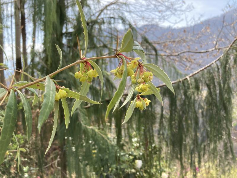 Zwar nicht aus der Ferne, aber aus der Nähe durchaus auffallend zur Blütezeit: Corylopsis pauciflora, die Armblütige Scheinhasel. Die "Blütenarmut" pro Blütenrispe im Gegensatz zu anderen Scheinhaseln macht sie durch die Anzahl der Rispen aber mehr als wett. :)