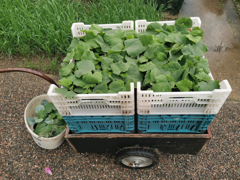 Ich habe gestern die Gurken in den Garten gebracht. Wenn der Boden etwas abgetrocknet ist, wird gepflanzt.