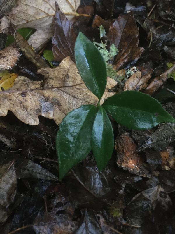 Kennt jemand vielleicht dies? Wächst am Waldrand. Hat einen festen Stiel und oben dann die ebenfalls festen Blätter. Will ein Sträuchlein werden? (Ist definitiv kein Immergrün.)