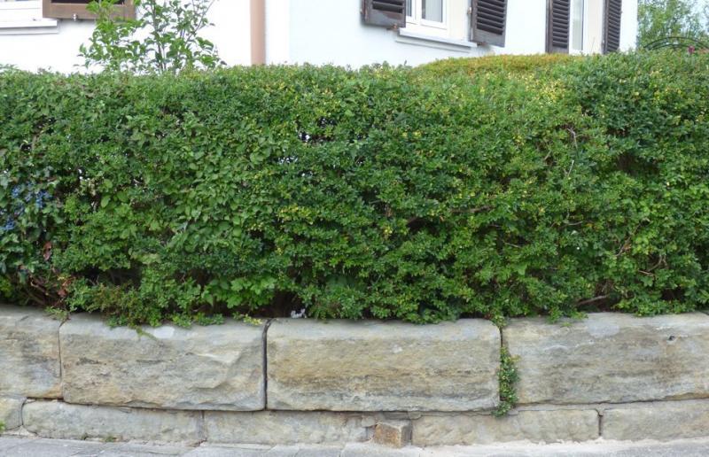Nordseite einer nahezu 2,5 Meter hohen Ligusterhecke. Sonne kaum vorhanden. Im Winter wird die ja lichter.