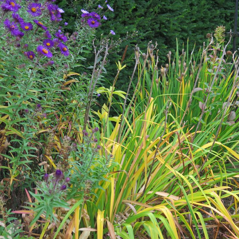 Aber Hempassion hat schon darauf hingewiesen: Das Laub der Taglilien ist auch von Bedeutung in der Gartengestaltung.Zusammen mit Astern, Sedums und anderen herbstblühenden Stauden sieht es recht hübsch aus. Mit grünen oder mit verfärbenden Blättern.Ein paar Bespiele dazu hier aus meinem Herbstgarten: