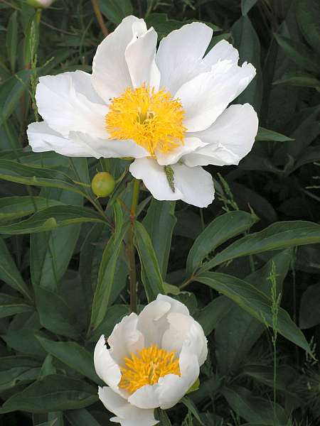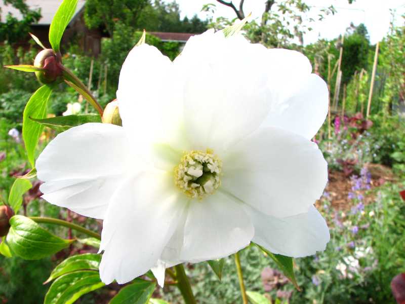 Helleborus? Man träumt wohl im Zwergenland? 'White Innocence' ist die Perle der Staudenpäonien, geradzu majestätisch mit über 150cm Höhe, überragt alle anderen, ist die späteste aller Hybriden (Emodi X Lacti) und hat ein Weiß, das einfach unbeschreiblich ist. Die Pflanze ist etwas zickig und braucht einige Jahre zum Einwachsen, aber wenn sie mal eingewachsen ist, kann sich kaum eine andere mit ihr messen!