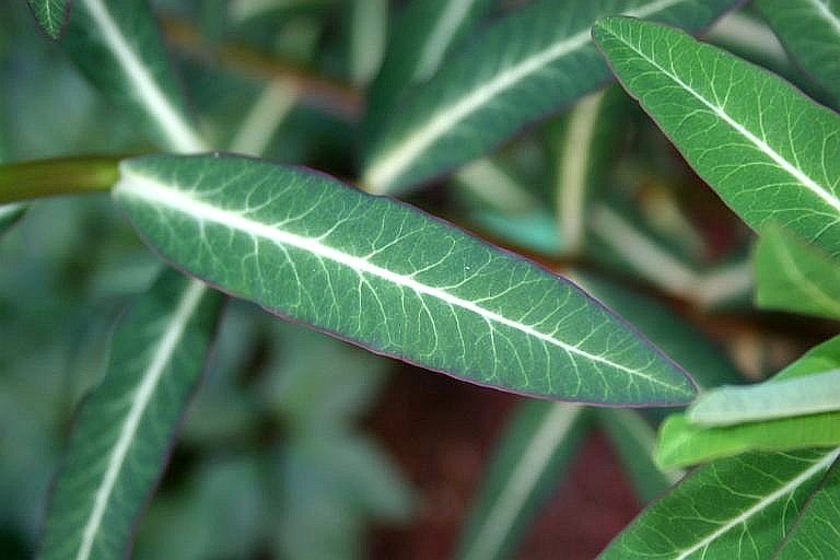 Interessanterweise finden sich an Euphorbia cornigera 'Goldener Turm' beachtenswerte Blattfarben ,die steht bei mir im Halbschatten.