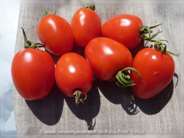 das ist jetzt schade. ich hab sie vollreif werden lassen. weil ich sie ja fuer die samengewinnung bekommen habe. und ich zu dem zeitpunkt massen an eigener ernte hatte.aber der gartenfreund, von dem ich sie.habe, baut seit jahren nur diese sorte an. da muss ja was dran sein , meine ich.Nein, meinte die Bauerntomate. Ich mag gerne längliche Tomaten, weil sie sich so gut in Scheiben schneiden lassen.