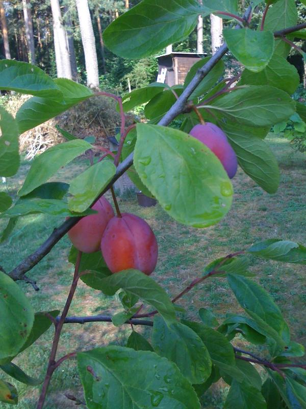 jetzt extra wegen der posts nachsehn gegangen, ich habe mir mirabellenbaum gekauft, vor 2 jahren bei ald.,der trug heuer recht gut, nun bin schnell in den hühnerauslauf schaun gegangen, ob ich sie nicht versäumt hab, nein sie hängen noch oben, fangen an zu färben und sind blaue zwetschken
