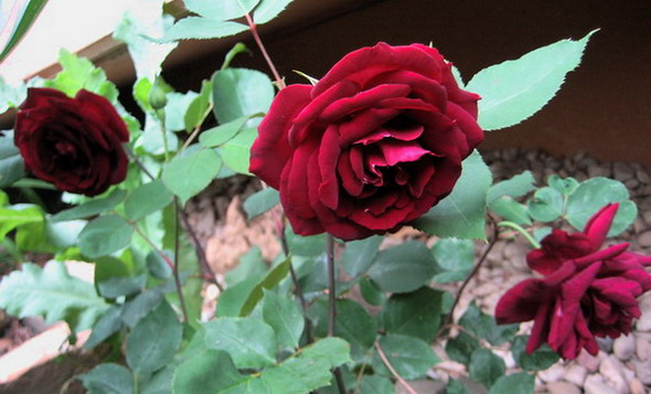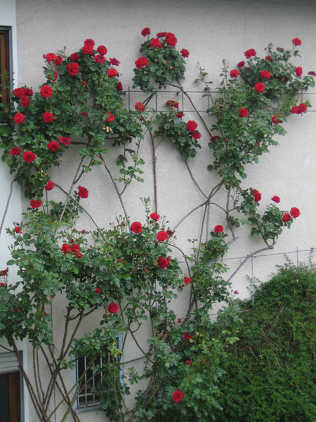 Eine der ersten war die Kletterrose Heidelberg - altmodisch, kräftig rot mit einem schönen süßen Duft.
