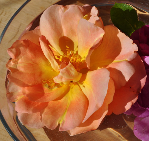 Alle drei zuletzt gezeigten Blüten sind zweifarbig, nicht immer im gleiche Sinn zwar! ;DSommersonne, Mozart und Honey Dijon mit dem Heupferd.