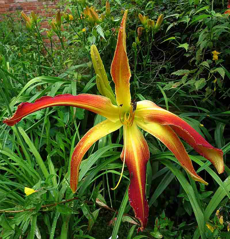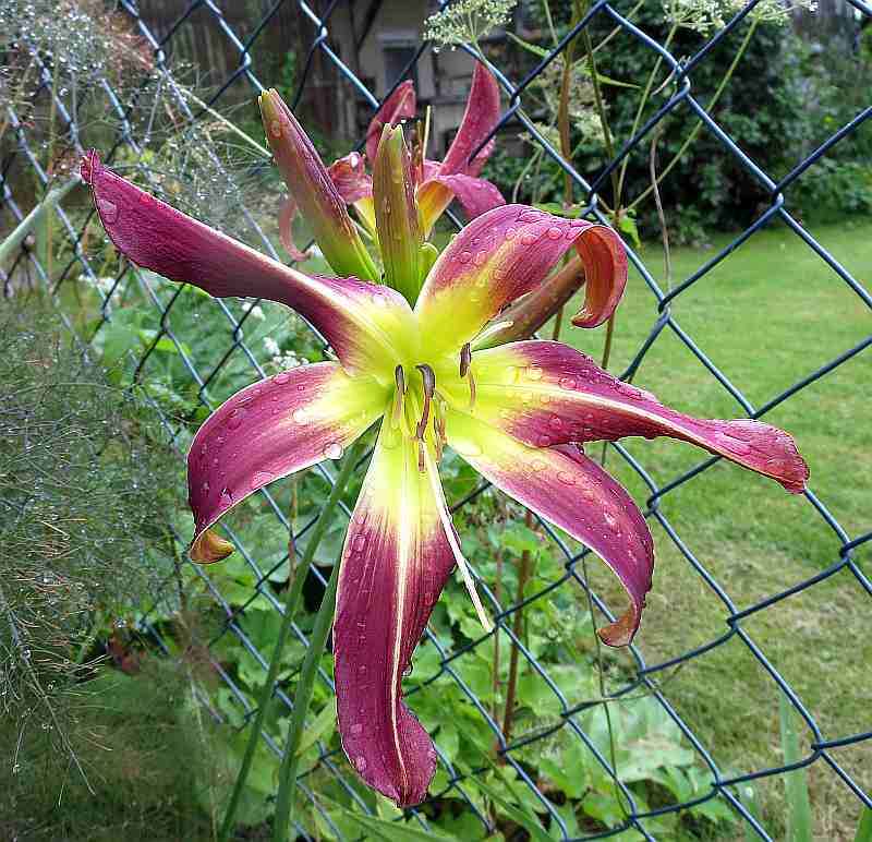 Ein interessanter Gedanke, Scabiosa. Oder auch Long Tall Sally, ein Elternteil von Thin Man .Da muss ich mal bei der Herkunftsquelle nachforschen, ob dort auch eine dieser Sorten vorhanden ist.Hat Ähnlichkeit mit 'Thin Man' von Trimmer, finde ich, callis. Aber die Höhe passt nicht....Außer Konkurrenz der riesigste Spider, der mir bisher begegnet ist, mindestens 30cm Durchmesser. Erwarben habe ich ihn als Laughing Giraffe. Wenn ich aber in die AHS-Datenbank schaue, kommt mir der Name doch sehr unwahrscheinlich vor.
