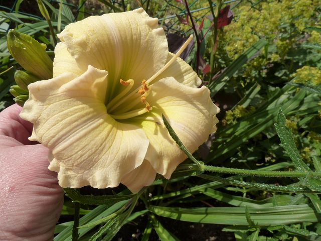Auch `Taos`hat zum ersten mal geblüht, aber da weiss ich nicht so richtig, was ich von ihr halten soll. ich hatte sie mir zarter vorgestellt und dann so eine derbe Riesenblüte.