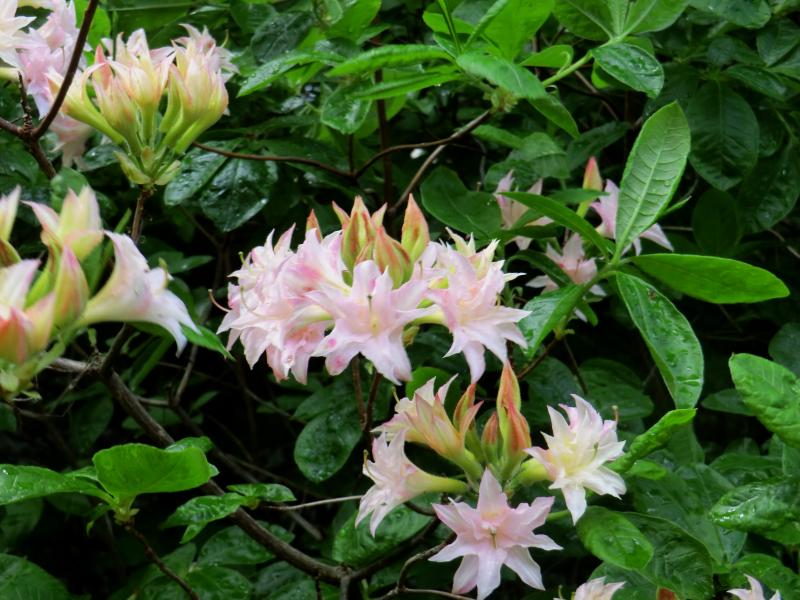 Habe noch einen Nachtrag zum Rhodopark. Etwas versteckt stand nämlich dieser Rhododendron mit spitzen Blütenblättern. Kann mir einer sagen, welcher das ist?