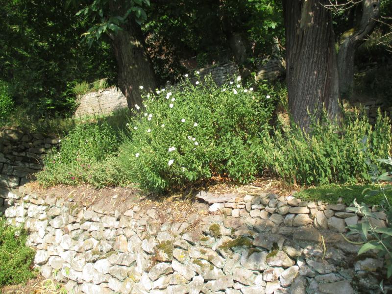 Inzwischen pflanze ich auf alle Trockenmauern am Waldrand Cistus, der läßt sich von Trockenheit und Hitze kaum beeindrucken.