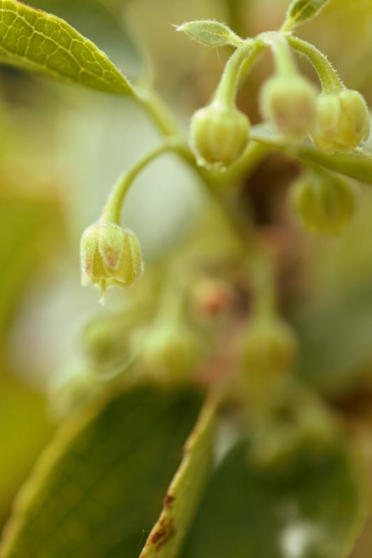 Noch ein letztes eher an der zweiten dritten Blick, mit mini unscheinbaren Blüten. Maqui oder Aristotelia chilensis im Kübel. Voriges Jahr sind die Früchte an den Busch vertrocknet, vielleicht kann ich die dieses Jahr probieren.