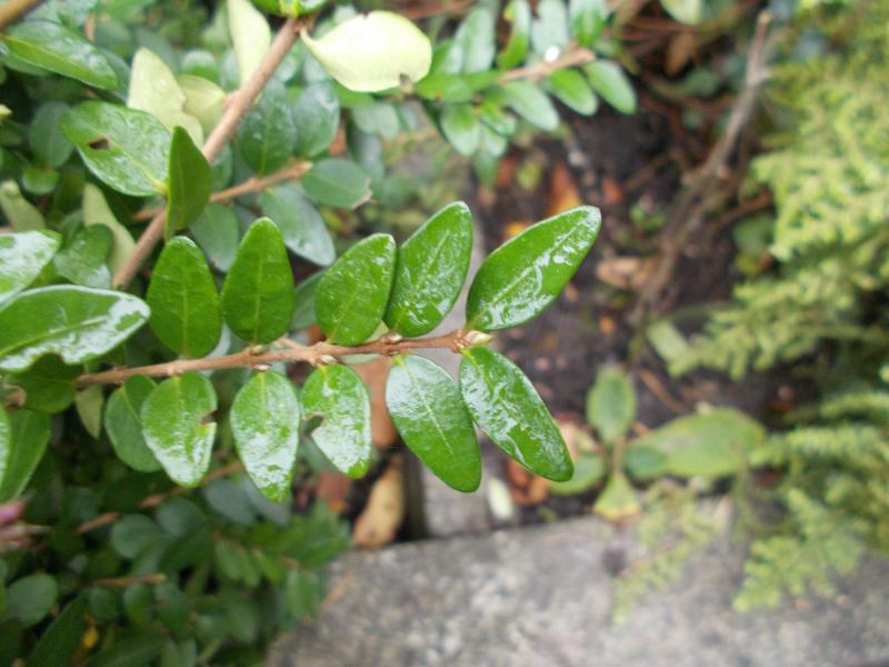 Pilea – darauf wär' ich nie gekommen. Als Kind hatte ich mal Pilea cadierei, die in der DDR zum Blumenladen-Standardsortiment gehört zu haben scheint, aber seither hab' ich mich mit dieser Gattung nie wieder näher befaßt. Und Lonicera nitida paßt in der Tat viel besser als Cotoneaster horizontalis, den ich diffus im Hinterkopf zu haben glaubte.