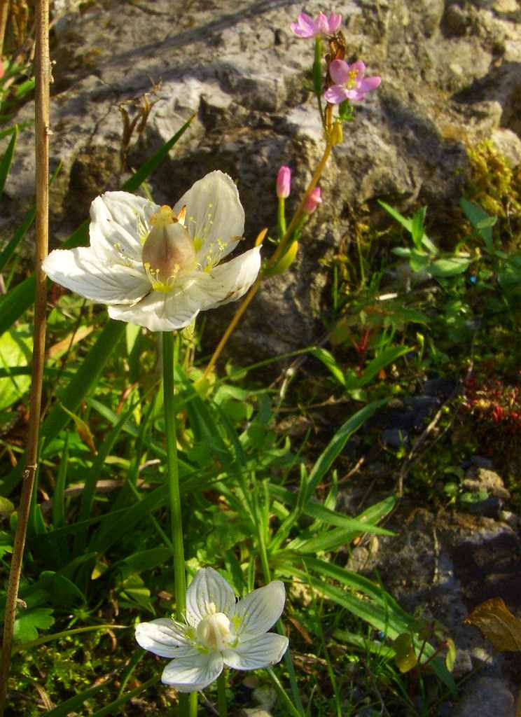 Ja, ebbie, Du liegst richtig. Das Centaurium sät sich überallhin aus und kommt mit den feuchten bis nassen Bedingungen zwischen Parnassia und Tofieldia eigentlich sogar schon zu gut zurecht.Sag' mal Phalaina, ist das im Hintergrund Tausendgüldenkraut? Will's das auch so nass wie die Parnassia?