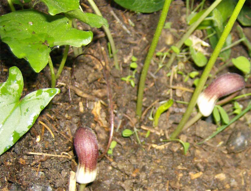 Wer kann mir helfen: Diese unbekannten "Kannen" sind bei mir im Schattenbeet aufgetaucht (siehe Bild), ich vermute sie stammen von einem Forumstreffen (Waldschrat 2011?). Größe ca 5-10 cm über dem Boden. Dazu kleine pfeilförmige Blätter. Arisaema? Arum? Für eure Hilfe im Voraus vielen Dank