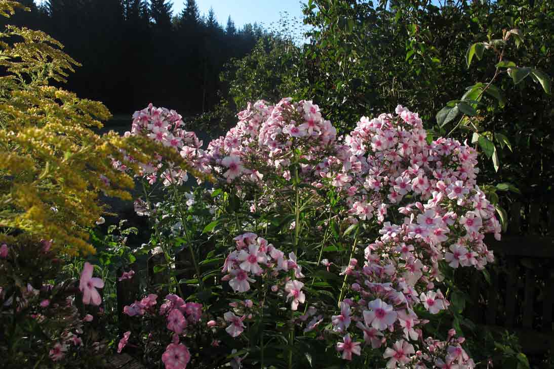 Diesen Phlox habe ich schon am 27.8 hier gezeigt, und er blüht immer noch. Wohl keine besondere Sorte wie die hier gezeigten, aber sowas von wüchsig und gesund, 1,60 m hoch. Hatte ihn vor Jahren in der lokalen Gärtnerei als "Phlox weiß" gekauft. Wer weiß, wie der auf russich heißt....
