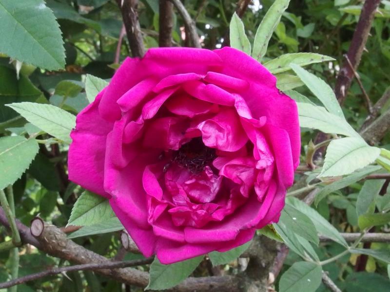 Die letzten schönen Blüten von 'Jean Lafitte'einer setigera Hybride mit recht großen Blüten,dabei fies stachelig.
