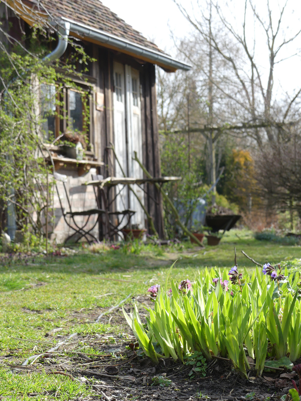 Fast der ganze Garten hat jetzt Sonne, die ersten Purissima Tulpen blühen