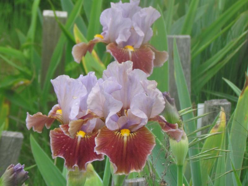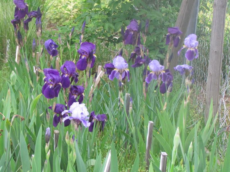 Der letzte Blick beim Verlassen des Gartens fällt hier zur Zeit auch auf diverse Iris germanica, (die heller Blaue unten links wegdenken). Einer Mitschreiberin dürften sie größtenteils bekannt vorkommen.