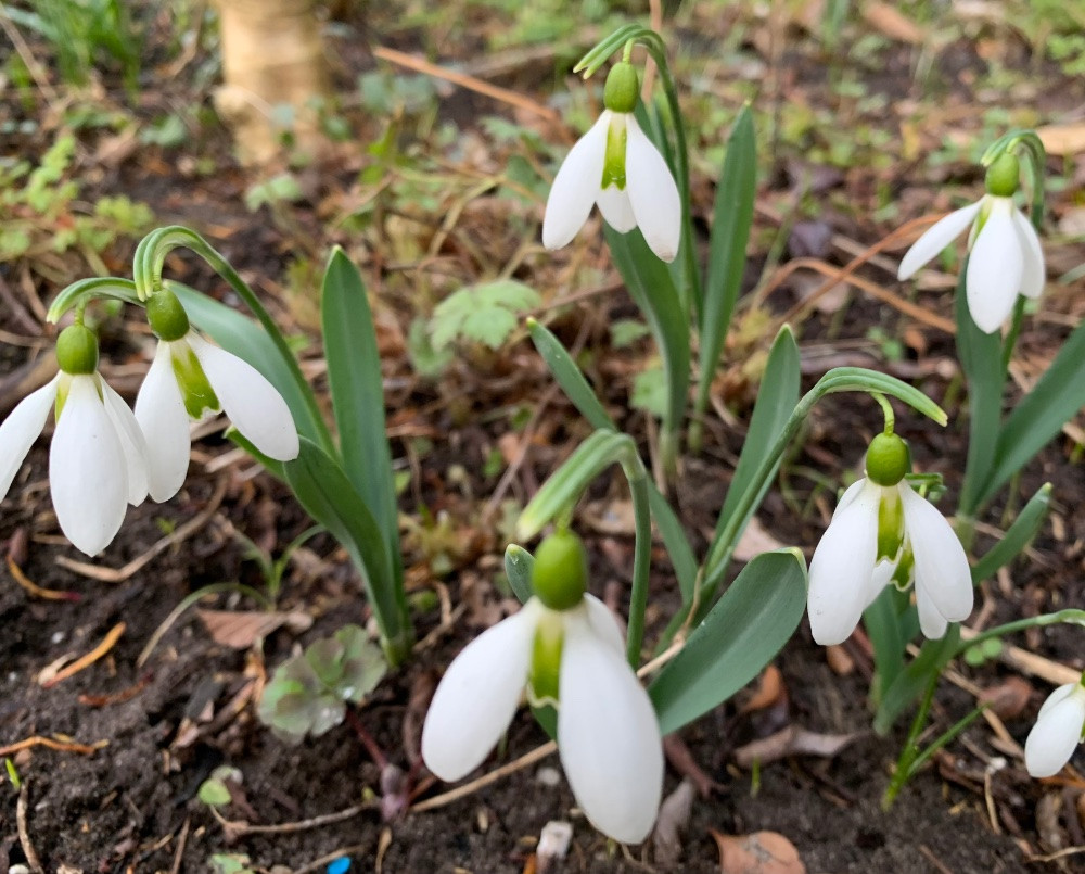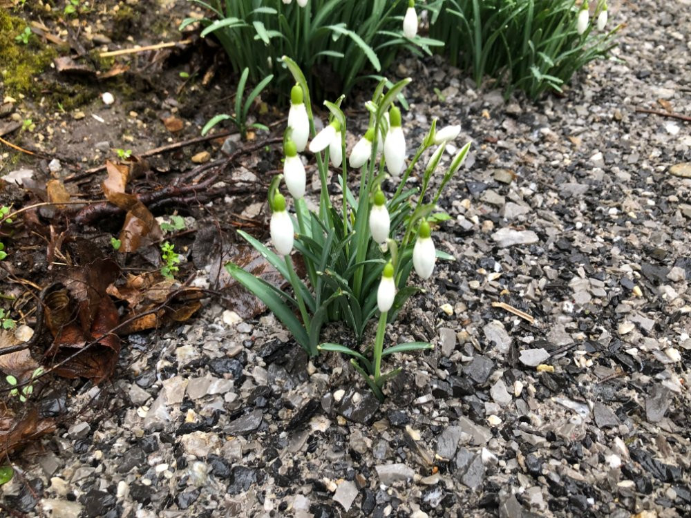 das sind jetzt einfach die ganz normalen was ich aber richtig rührend fand: bin gerade an dieser Wohnanlage dran, verbessernd/ planend/ modernisierend mit Bestand, da haben die Gärtner einen Weg geebnet, gegen die Erosion einfache Stufen gebaut und etwas gemischten, bindigen Schotter draufgegeben und ziemlich wahrscheinlich auch mit der Rüttelplatte kurz verdichtet, aber die Schneeglöckchen sind einfach ausgetrieben, sehr tapfer