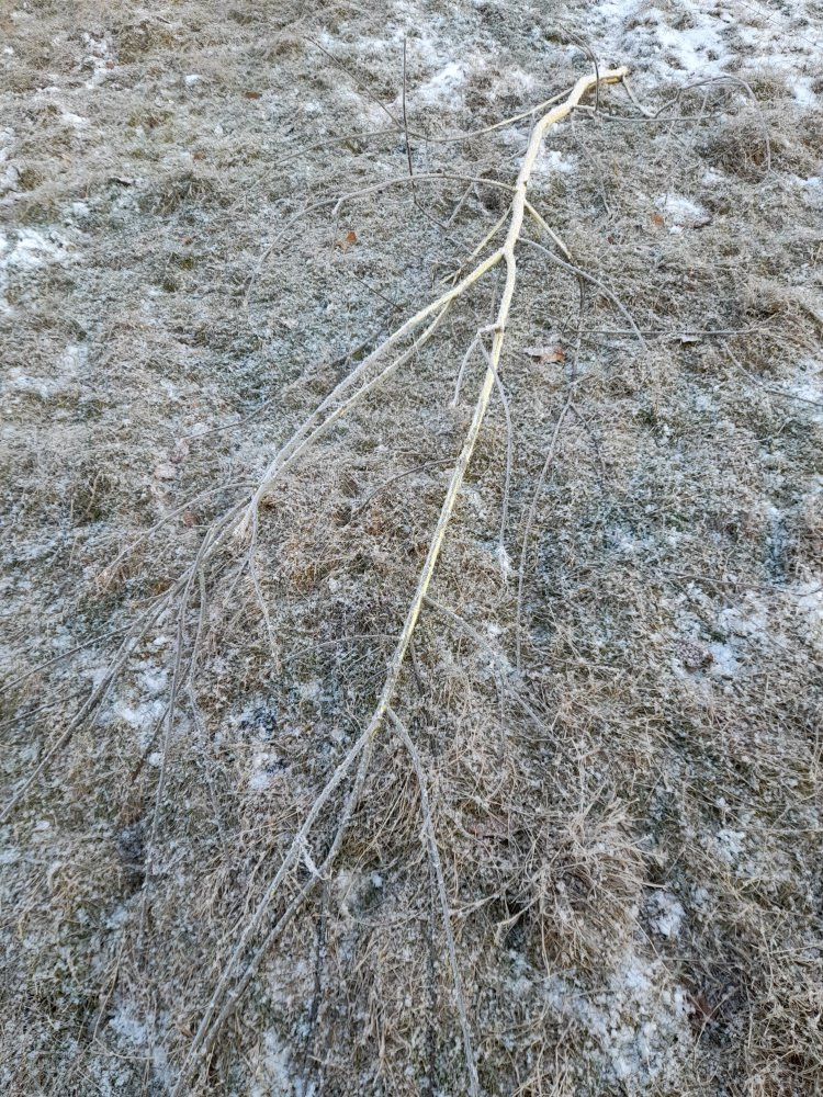 So. Das war Altschaden. Gebrochen Eichenkrone. Die NLF hat zwar 99 Prozent entsorgt. Aber 1 Prozent hong über meinem Parkplatz. Ich muss ja wo bleiben wenn ich zäune. Ergo mussten wir ran. Ist jetzt weg. Aber hüstel... war nicht ganz ohne Risiko. Weil ging ja nur mit Hau Ruck. Dann noch auf der anderen Seite Rest wegbefördert... wenn ich da parke muss ja auch ein Holzlaster ect. Platz finden. Morgen wollen wir wieder raus. Ende Februar kommt jetzt flott