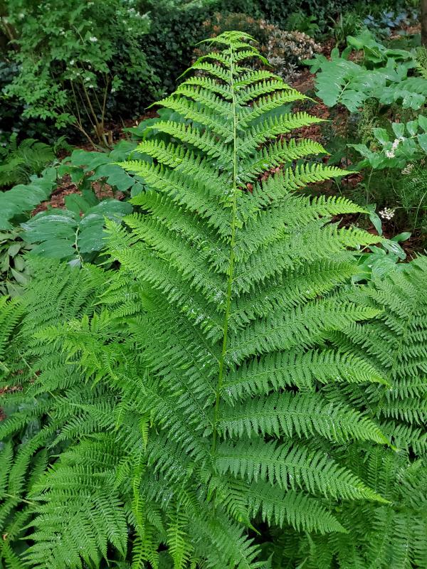 Eigentlich sieht das hier nach Dryopteris bissetiana aus (van Driel) - andere ohne Stecker dort sind lt. Notizen 2 Dryopteris affinis (einer davon Crispa) und 1 Polystichum set. Proliferum (scheint weg den würde ich erkennen), die schließe ich aber alle aus. Die Fiederchen passen auch zu D.b. , nur die Angaben zur Höhe nicht - ich habe im www nichts über 50cm gefunden. Meiner ist aber im Austrieb nahezu 1m hoch, später noch >70cm wenn die Wedel sich neigen.