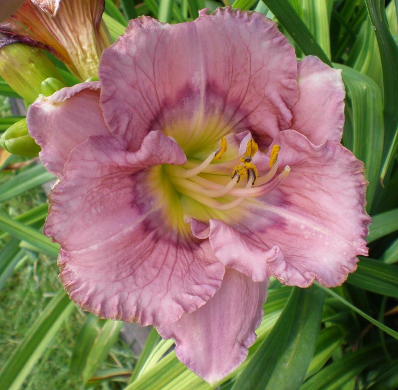 So, was lange währt wird gut, was lange gärt wird Wut.Hier nun endlich dal lange versprochene Foto von `Seal of Approval`, leider völlig verregnet und es muß auch ziemlich kalt gewesen dein.Normalerweise ist der violette Saum dezenter und das Weiß in den Blütenblättern überwiegt. Also leider kein repräsentatives Foto.Dann vergiss bitte das Foto von Seal of Approval nicht, wenn du schon mal gerade den Compi bemühst... ;)Auch mir war Sue Strickfaden bisher vollkommen unbekannt.