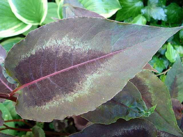 Vorsicht ,wuchert! Aber die Blattfarbe ist einmalig: Persicaria microcephala 'Red Dragon'