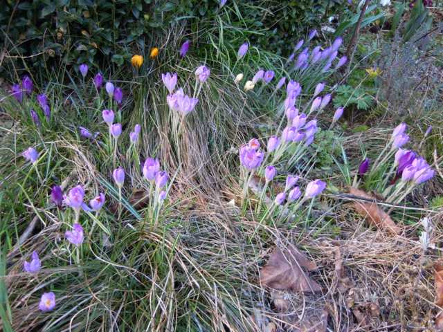 Diese hier wurden definitiv nicht gepflanzt. Ich krieg sie auch nicht rausgezogen.Außen sind sie hell, innen zartlila. Ähnlich C. tommasinianus, aber dieses Außenseiten?
