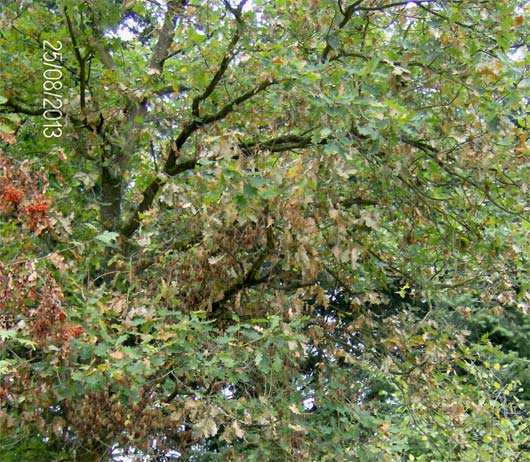 Einige km weiter nördlich bekommen jetzt sogar ausgewachsene Eichen ernste Probleme...Die heutige Garteninspektion ergab lauter "übervolle" Regenfässer. Es scheint also eine regnerische Nacht gewesen zu sein.....Keine Pilze im Wald, da der Boden völlig ausgedörrt ist.
