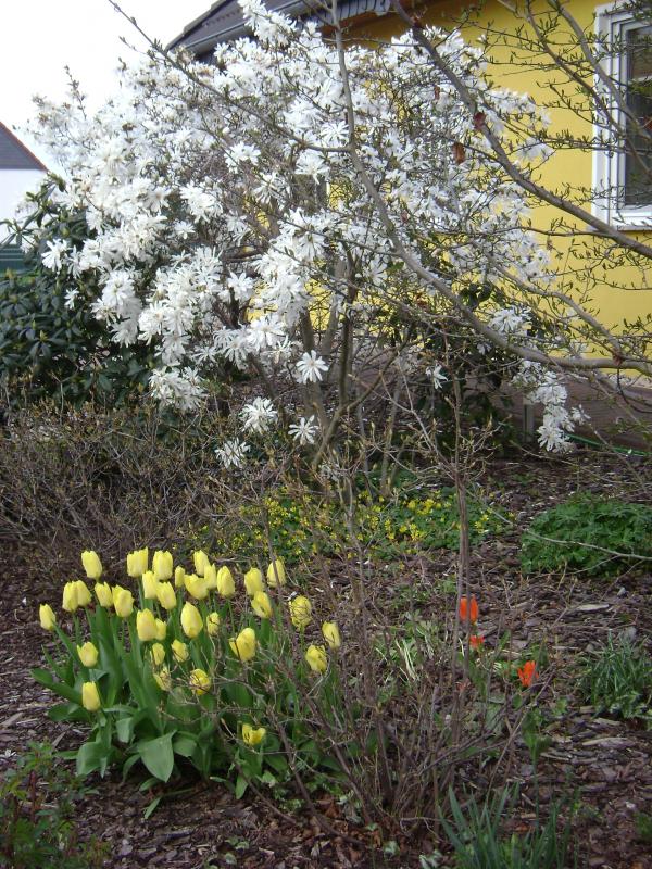 heute Abend 1 Foto von unserer Magnolie stellata, die jetzt seit 13 Jahren in unserem Vorgarten steht