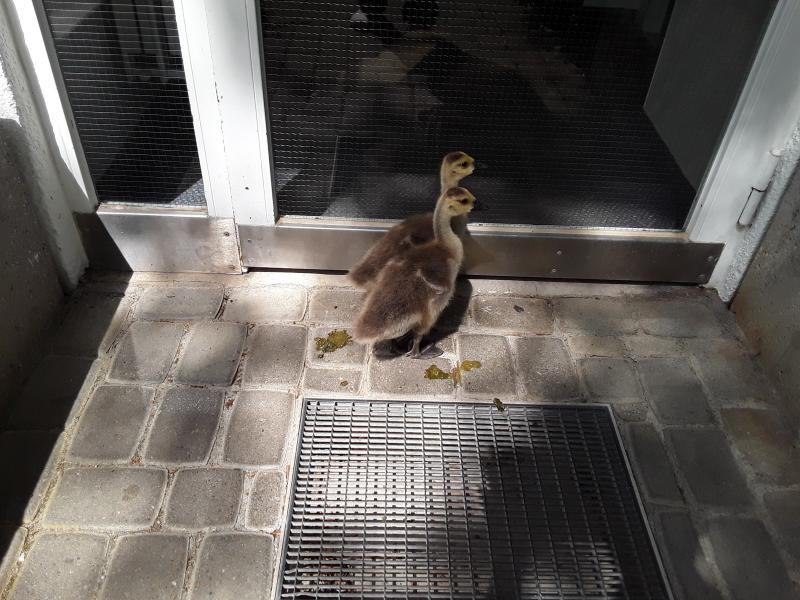 Die Gänse könnten junge Nilgänse sein. Wenn sie die Elterntiere verloren haben, werden sie wohl Fuchs- oder Wachbärfutter.