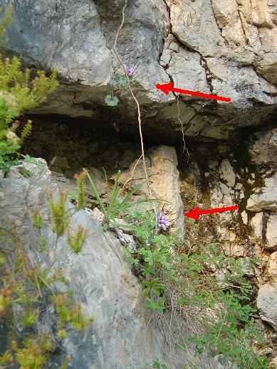 nun aber zum Standort.Ich würde die Pflanze durchaus als Ritzenbewohner bezeichnen, ähnlich Camp. zoysii etc.Zur Erleichterung habe ich die Pflanzen jeweils mit Pfeile angezeigt !