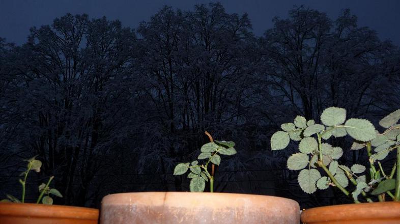 Aller guten Dinge sind drei (wo kommt nur der komische Spruch her??) Daher ein Bild mit 3 Rosentopfen (Stecklinge und Sämlinge) vor den verschneiten schönen Linden in unserem Viertel.Den Hobbyzüchtern und Rosenleuten hier wünsche ich 3 Dinge: Schöne Weihnachten (was noch davon übrig ist)Einen guten Rutsch nach 2011 undeine interessante Rosensaison!
