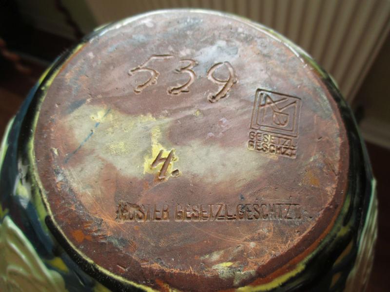 Jugendstil ist nicht mein Sammelgebiet. Die Bodenmarke interpretiere ich als L und M. Im Netz finde ich ähnliche Vasen. Die sind von Max Laeuger. Eine Bodenmarke ähnlich von Kunst Töpferei Kandern.