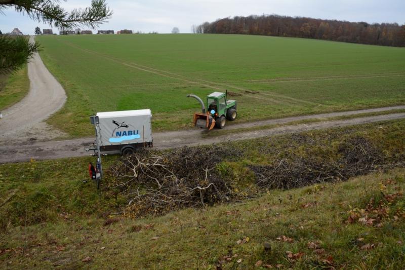 Hier das "Gerät des Tages"- so viel hätten wir niemals wegschleppen können, wie sich dieser tapfere Häcksler samt Besitzer durch das Astwerk schredderte. Der Hänger war hinterher voll!