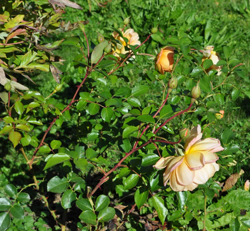Die einzige, die im Laub und blütenmässig noch besser dasteht ist die Pat Austin. Das Laub gesund, auf 50 cm eine Anzahl Blüten.