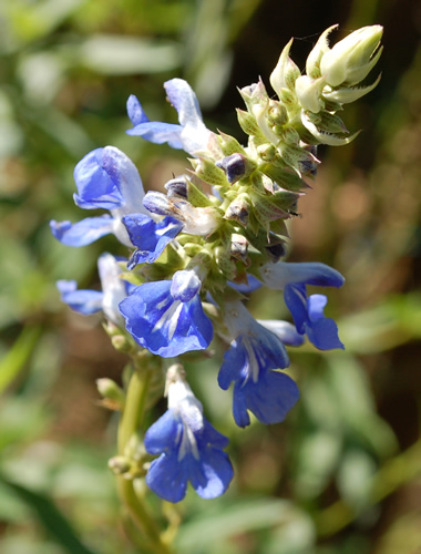 Es ist aber ganz sicher eine S.leucantha! So wie es aussieht, die Sorte "Midnight Purple" . Die blüht bei mir zwar noch nicht, ist aber immer etwas früher dran als die original Sorte mit den weisslich-violetten BlütenLG, Bea