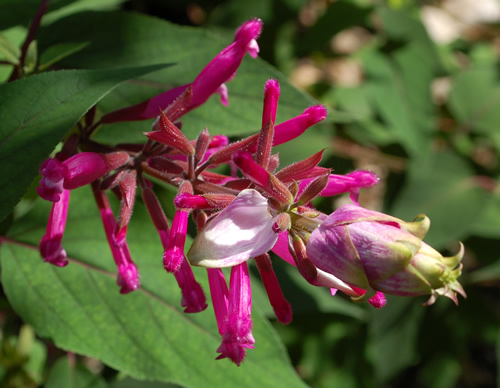 dein Johannisbeer Salbei ist Salvia microphylla var. microphylla ? Schwarze-Johannisbeer-Salbei? Er wächst mehr buschig als die anderen Varianten?Der Sumpf-Salbei ist die Hummelschaukel? Salvia uliginosa? Dieser ist bei mir nicht zuverlässig winterhart. Dafür aber der eigentlich schönere Salvia azurea var. grandiflora.